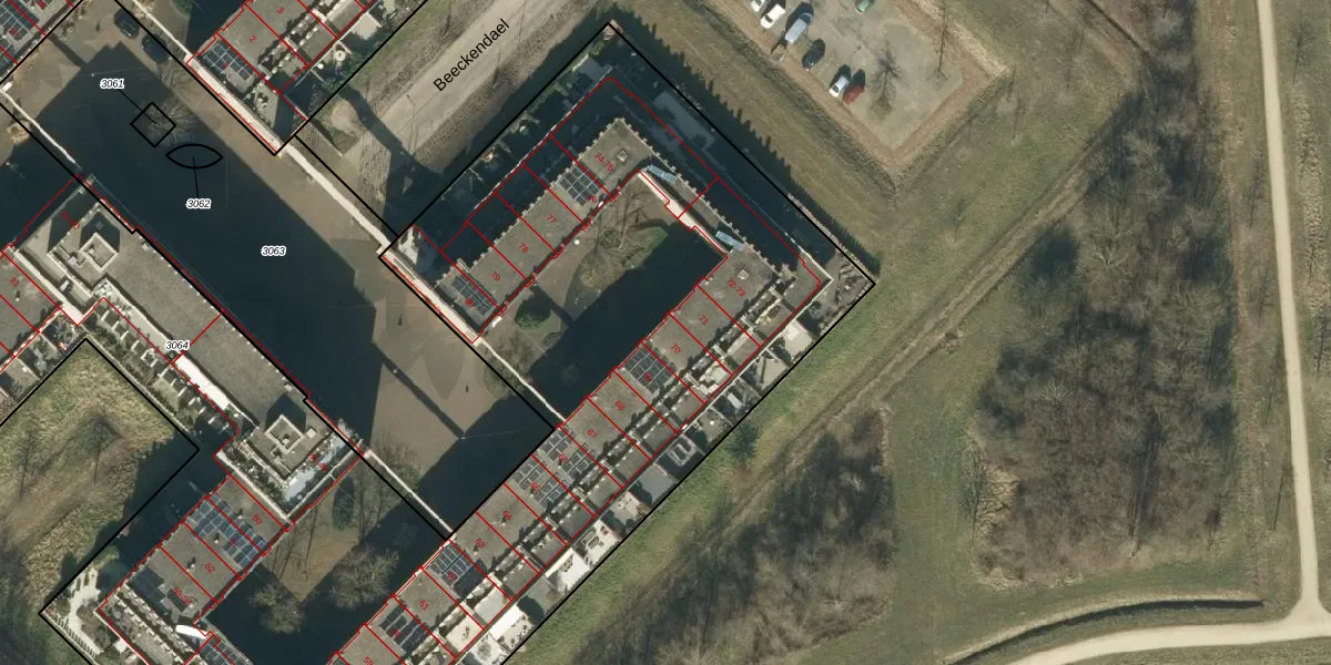 Het perceel waarop Beeckendael 70 staat heeft een oppervlakte van 1,2 ha. Dit is een zeer groot perceel. De perceeloppervlakte wordt geregistreerd door het Kadaster. Gedetailleerde informatie over de maten van dit perceel kunt u vinden in het rapport Kadastrale kaart met maatvoering van Beeckendael 70.