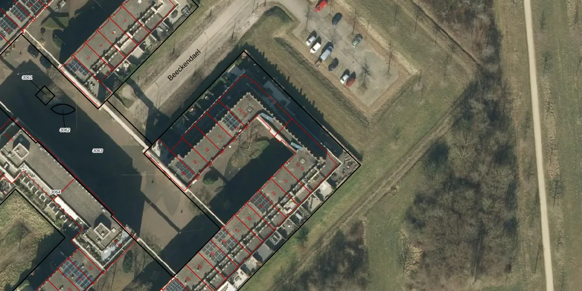 Het perceel waarop Beeckendael 73 staat heeft een oppervlakte van 1,2 ha. Dit is een zeer groot perceel. De perceeloppervlakte wordt geregistreerd door het Kadaster. Gedetailleerde informatie over de maten van dit perceel kunt u vinden in het rapport Kadastrale kaart met maatvoering van Beeckendael 73.
