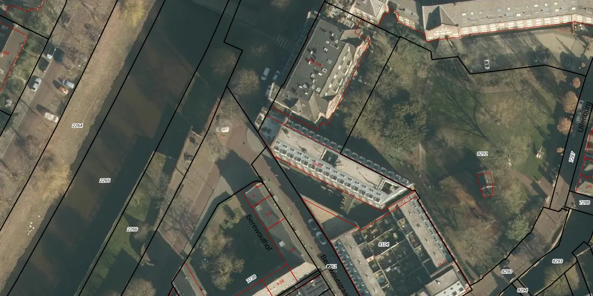 Het perceel waarop Berewoutstraat 45 staat heeft een oppervlakte van 3440 m². Dit is een zeer groot perceel. De perceeloppervlakte wordt geregistreerd door het Kadaster. Gedetailleerde informatie over de maten van dit perceel kunt u vinden in het rapport Kadastrale kaart met maatvoering van Berewoutstraat 45.
