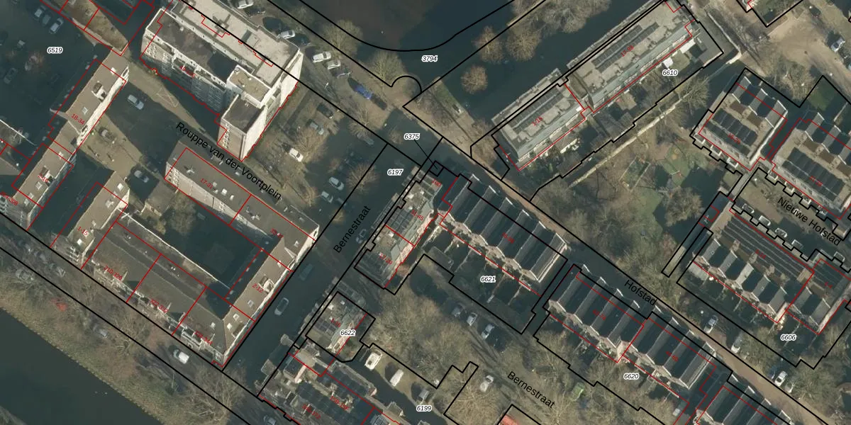 Het perceel waarop Bernestraat 41 staat heeft een oppervlakte van 955 m². Dit is een groot perceel. De perceeloppervlakte wordt geregistreerd door het Kadaster. Gedetailleerde informatie over de maten van dit perceel kunt u vinden in het rapport Kadastrale kaart met maatvoering van Bernestraat 41.