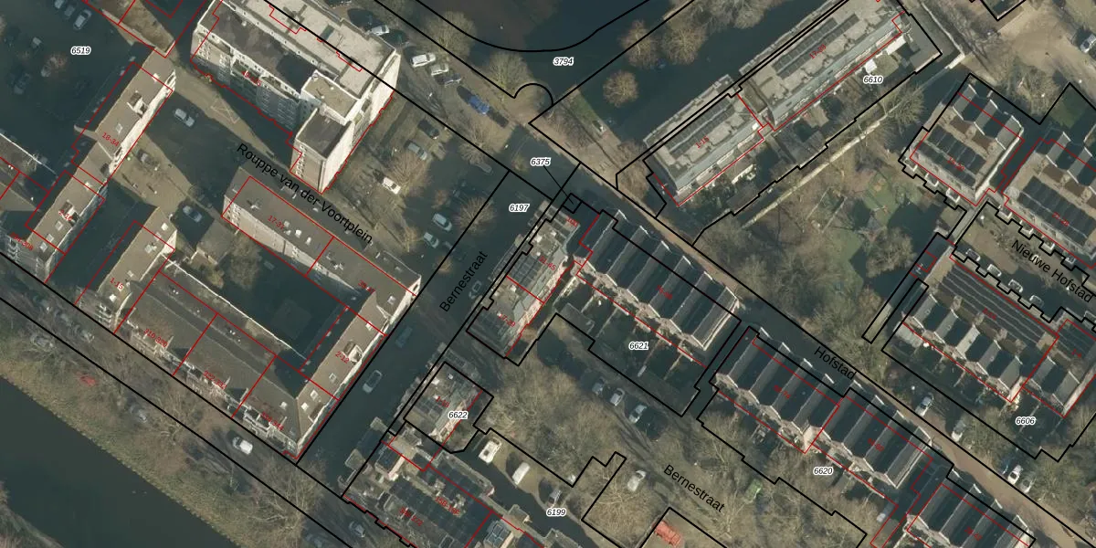 Het perceel waarop Bernestraat 43 staat heeft een oppervlakte van 955 m². Dit is een groot perceel. De perceeloppervlakte wordt geregistreerd door het Kadaster. Gedetailleerde informatie over de maten van dit perceel kunt u vinden in het rapport Kadastrale kaart met maatvoering van Bernestraat 43.