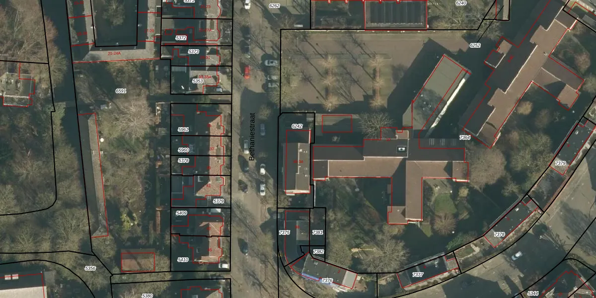 Het perceel waarop Bethaniestraat 26 staat heeft een oppervlakte van 370 m². Dit is een groot perceel. De perceeloppervlakte wordt geregistreerd door het Kadaster. Gedetailleerde informatie over de maten van dit perceel kunt u vinden in het rapport Kadastrale kaart met maatvoering van Bethaniestraat 26.