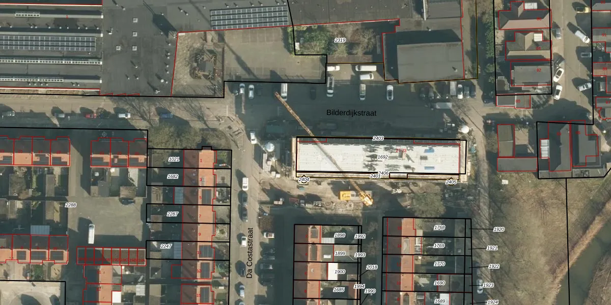 Het perceel waarop Bilderdijkstraat 43 staat heeft een oppervlakte van 616 m². Dit is een groot perceel. De perceeloppervlakte wordt geregistreerd door het Kadaster. Gedetailleerde informatie over de maten van dit perceel kunt u vinden in het rapport Kadastrale kaart met maatvoering van Bilderdijkstraat 43.