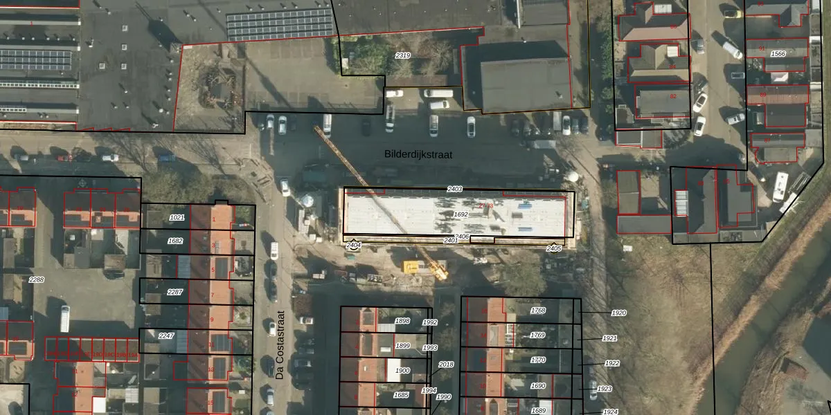 Het perceel waarop Bilderdijkstraat 47 staat heeft een oppervlakte van 616 m². Dit is een groot perceel. De perceeloppervlakte wordt geregistreerd door het Kadaster. Gedetailleerde informatie over de maten van dit perceel kunt u vinden in het rapport Kadastrale kaart met maatvoering van Bilderdijkstraat 47.