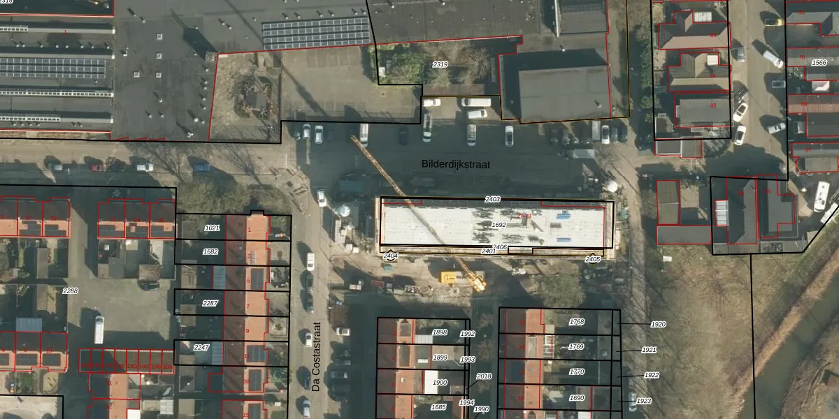 Het perceel waarop Bilderdijkstraat 59 staat heeft een oppervlakte van 616 m². Dit is een groot perceel. De perceeloppervlakte wordt geregistreerd door het Kadaster. Gedetailleerde informatie over de maten van dit perceel kunt u vinden in het rapport Kadastrale kaart met maatvoering van Bilderdijkstraat 59.
