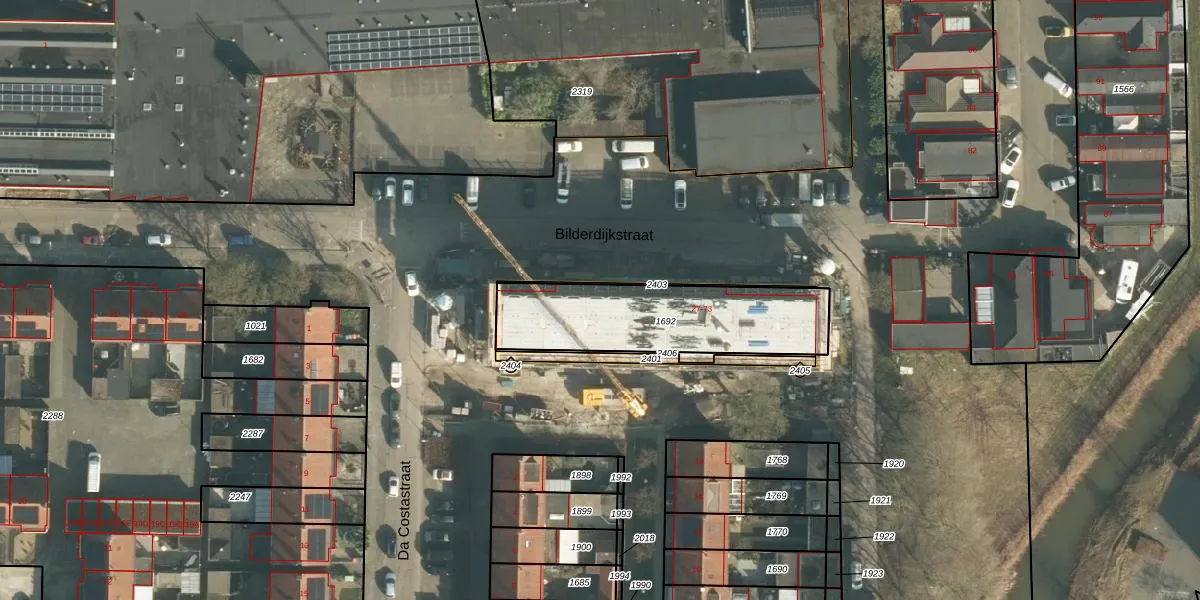 Het perceel waarop Bilderdijkstraat 61 staat heeft een oppervlakte van 616 m². Dit is een groot perceel. De perceeloppervlakte wordt geregistreerd door het Kadaster. Gedetailleerde informatie over de maten van dit perceel kunt u vinden in het rapport Kadastrale kaart met maatvoering van Bilderdijkstraat 61.