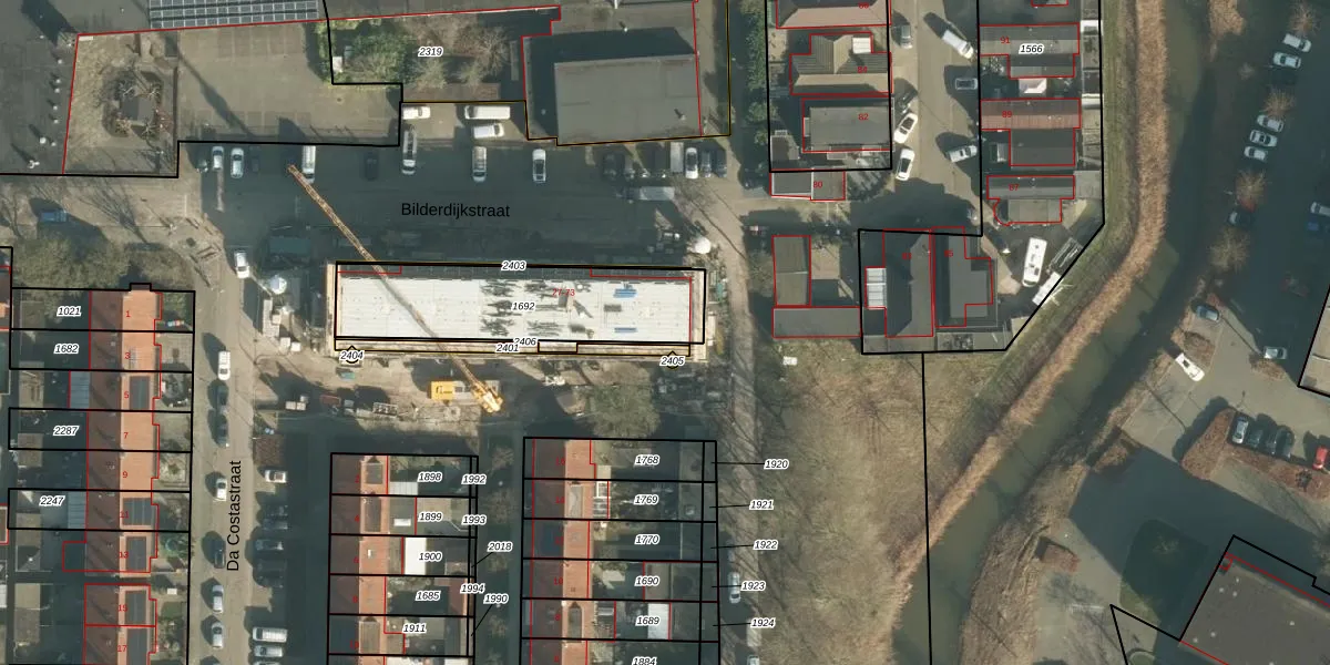 Het perceel waarop Bilderdijkstraat 73 staat heeft een oppervlakte van 616 m². Dit is een groot perceel. De perceeloppervlakte wordt geregistreerd door het Kadaster. Gedetailleerde informatie over de maten van dit perceel kunt u vinden in het rapport Kadastrale kaart met maatvoering van Bilderdijkstraat 73.