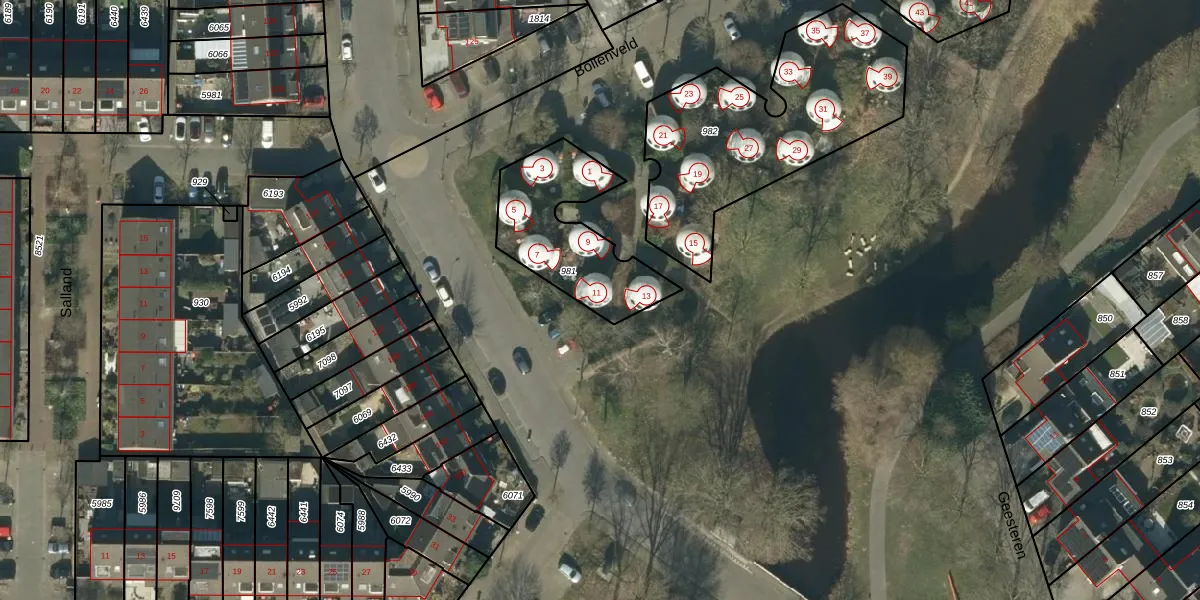 Het perceel waarop Bollenveld 11 staat heeft een oppervlakte van 450 m². Dit is een groot perceel. De perceeloppervlakte wordt geregistreerd door het Kadaster. Gedetailleerde informatie over de maten van dit perceel kunt u vinden in het rapport Kadastrale kaart met maatvoering van Bollenveld 11.
