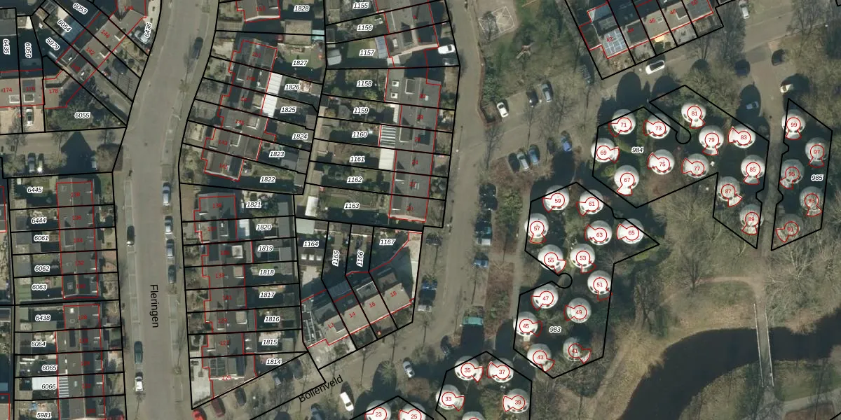 Gebruik de zoekbalk of klik op een perceel voor informatie over de adressen binnen dit perceel.