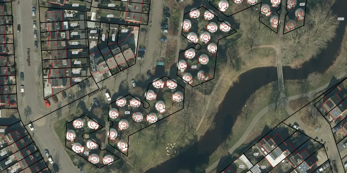 Het perceel waarop Bollenveld 37 staat heeft een oppervlakte van 952 m². Dit is een groot perceel. De perceeloppervlakte wordt geregistreerd door het Kadaster. Gedetailleerde informatie over de maten van dit perceel kunt u vinden in het rapport Kadastrale kaart met maatvoering van Bollenveld 37.