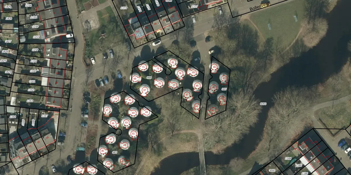 Het perceel waarop Bollenveld 77 staat heeft een oppervlakte van 870 m². Dit is een groot perceel. De perceeloppervlakte wordt geregistreerd door het Kadaster. Gedetailleerde informatie over de maten van dit perceel kunt u vinden in het rapport Kadastrale kaart met maatvoering van Bollenveld 77.