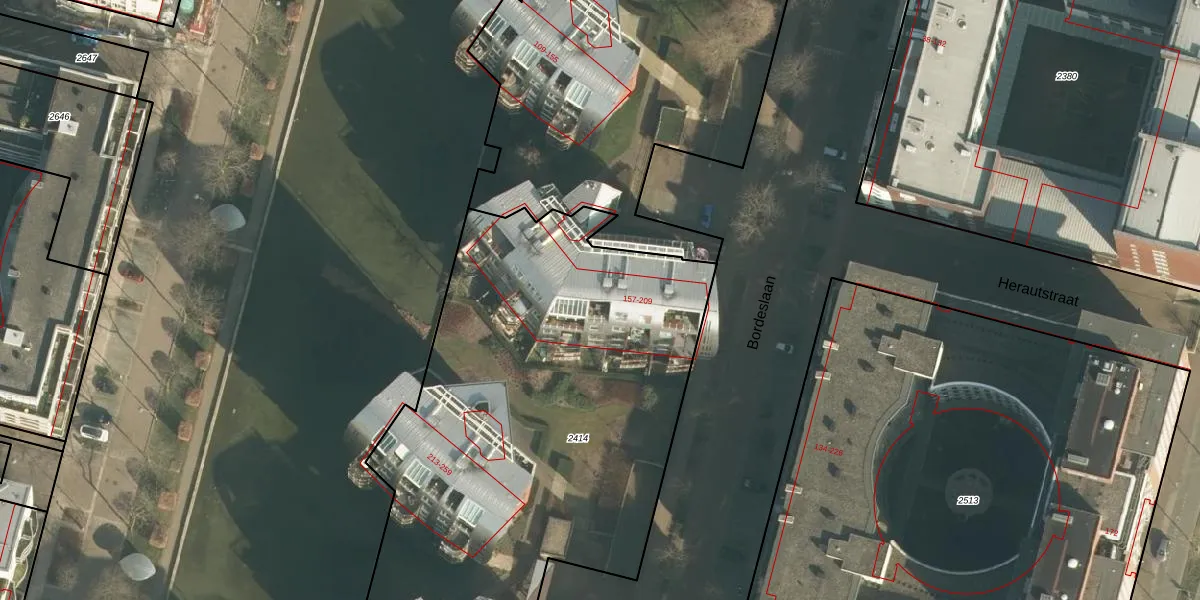 Het perceel waarop Bordeslaan 173 staat heeft een oppervlakte van 2892 m². Dit is een zeer groot perceel. De perceeloppervlakte wordt geregistreerd door het Kadaster. Gedetailleerde informatie over de maten van dit perceel kunt u vinden in het rapport Kadastrale kaart met maatvoering van Bordeslaan 173.