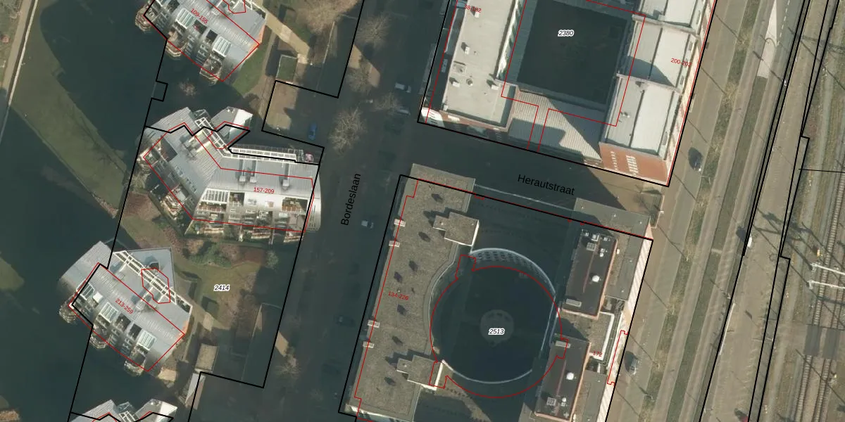 Bordeslaan 174 is gelegen op kadastraal perceel HTG00F2513. Deze kadastrale aanduiding is uniek en wordt gebruikt door het Kadaster om eigendomsrechten en andere zakelijke rechten vast te leggen. Het perceel maakt onderdeel uit van de kadastrale gemeente 's-Hertogenbosch.