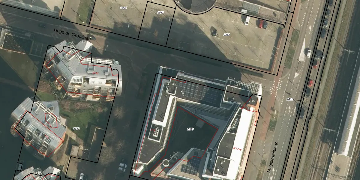Het adres ligt op het perceel HTG00-F-2506, dat zich in de kadastrale gemeente 's-Hertogenbosch bevindt. De oppervlakte van het perceel is 3591 m². Dat is groter dan gemiddeld in 's-Hertogenbosch, waar de gemiddelde perceeloppervlakte op 1691,39 m² ligt. De grootste perceeloppervlakte in de kadastrale gemeente is 55,1 ha. De kleinste oppervlakte bedraagt 0 m². Op het perceel liggen in totaal 31 adressen. De huidige grenzen van het perceel zijn digitaal in de Basisregistratie Kadaster (BRK) geregistreerd op 23-02-2007.