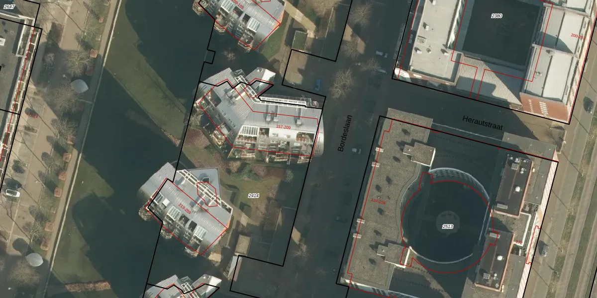 Bordeslaan 209 is gelegen op kadastraal perceel HTG00F2414. Deze kadastrale aanduiding is uniek en wordt gebruikt door het Kadaster om eigendomsrechten en andere zakelijke rechten vast te leggen. Het perceel maakt onderdeel uit van de kadastrale gemeente 's-Hertogenbosch.