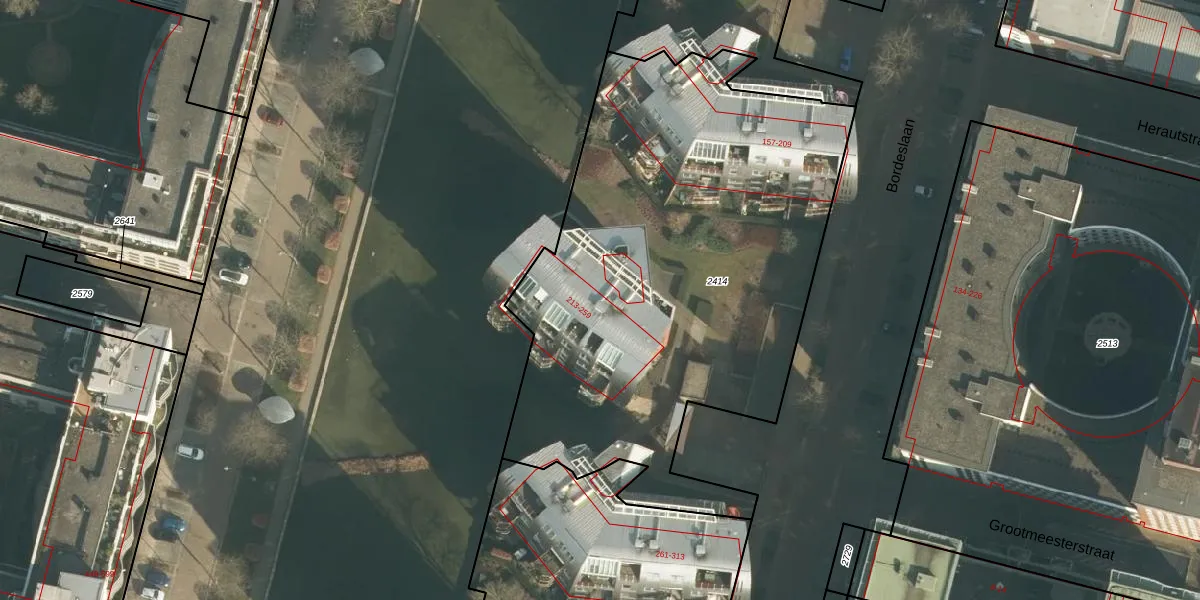 Bordeslaan 215 is gelegen op kadastraal perceel HTG00F2414. Deze kadastrale aanduiding is uniek en wordt gebruikt door het Kadaster om eigendomsrechten en andere zakelijke rechten vast te leggen. Het perceel maakt onderdeel uit van de kadastrale gemeente 's-Hertogenbosch.