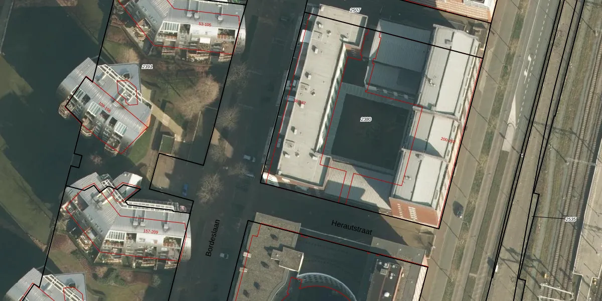 Het perceel waarop Bordeslaan 96 staat heeft een oppervlakte van 3587 m². Dit is een zeer groot perceel. De perceeloppervlakte wordt geregistreerd door het Kadaster. Gedetailleerde informatie over de maten van dit perceel kunt u vinden in het rapport Kadastrale kaart met maatvoering van Bordeslaan 96.
