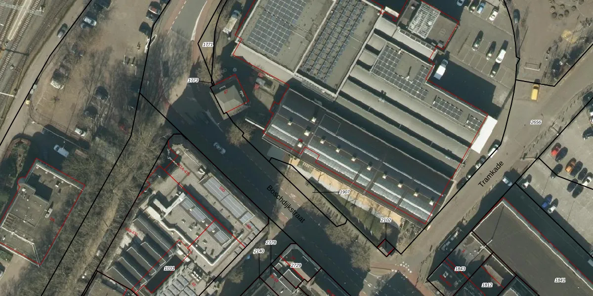 Het perceel waarop Boschdijkstraat 45 staat heeft een oppervlakte van 9348 m². Dit is een zeer groot perceel. De perceeloppervlakte wordt geregistreerd door het Kadaster. Gedetailleerde informatie over de maten van dit perceel kunt u vinden in het rapport Kadastrale kaart met maatvoering van Boschdijkstraat 45.