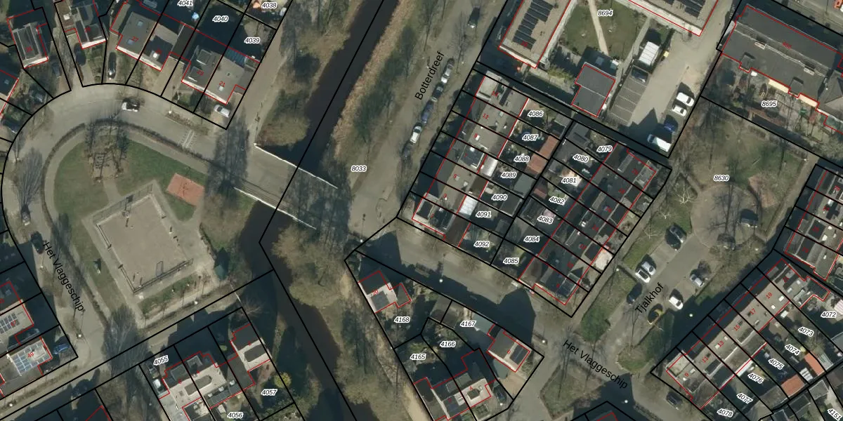 Het perceel waarop Botterdreef 1 staat heeft een oppervlakte van 175 m². Dit is een middelgroot perceel. De perceeloppervlakte wordt geregistreerd door het Kadaster. Gedetailleerde informatie over de maten van dit perceel kunt u vinden in het rapport Kadastrale kaart met maatvoering van Botterdreef 1.