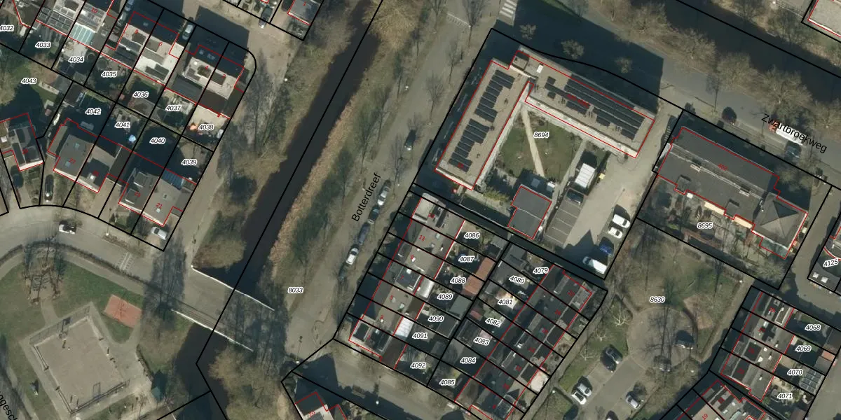 Botterdreef 13 is gelegen op kadastraal perceel HTG00T4086. Deze kadastrale aanduiding is uniek en wordt gebruikt door het Kadaster om eigendomsrechten en andere zakelijke rechten vast te leggen. Het perceel maakt onderdeel uit van de kadastrale gemeente 's-Hertogenbosch.