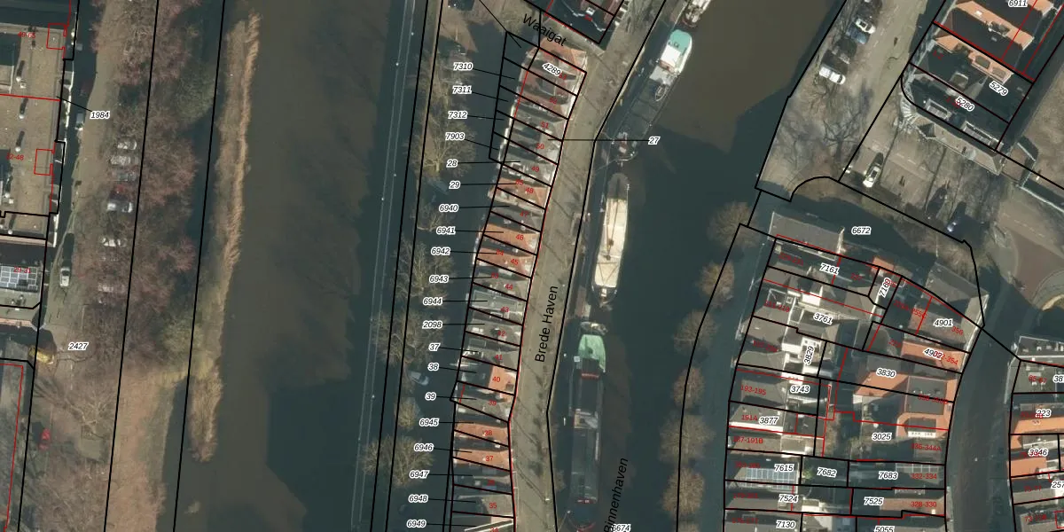 Het perceel waarop Brede Haven 45 staat heeft een oppervlakte van 52 m². Dit is een klein perceel. De perceeloppervlakte wordt geregistreerd door het Kadaster. Gedetailleerde informatie over de maten van dit perceel kunt u vinden in het rapport Kadastrale kaart met maatvoering van Brede Haven 45.