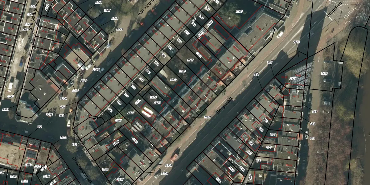 Het perceel waarop Brugstraat 30 staat heeft een oppervlakte van 232 m². Dit is een middelgroot perceel. De perceeloppervlakte wordt geregistreerd door het Kadaster. Gedetailleerde informatie over de maten van dit perceel kunt u vinden in het rapport Kadastrale kaart met maatvoering van Brugstraat 30.