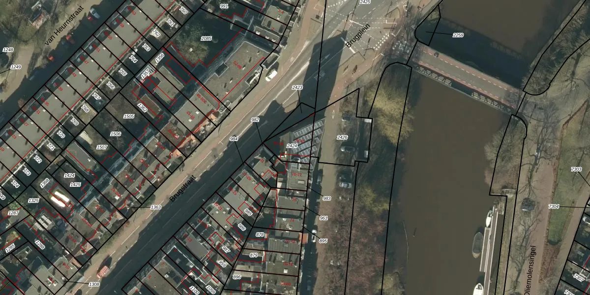 Het perceel waarop Brugstraat 33 staat heeft een oppervlakte van 172 m². Dit is een middelgroot perceel. De perceeloppervlakte wordt geregistreerd door het Kadaster. Gedetailleerde informatie over de maten van dit perceel kunt u vinden in het rapport Kadastrale kaart met maatvoering van Brugstraat 33.