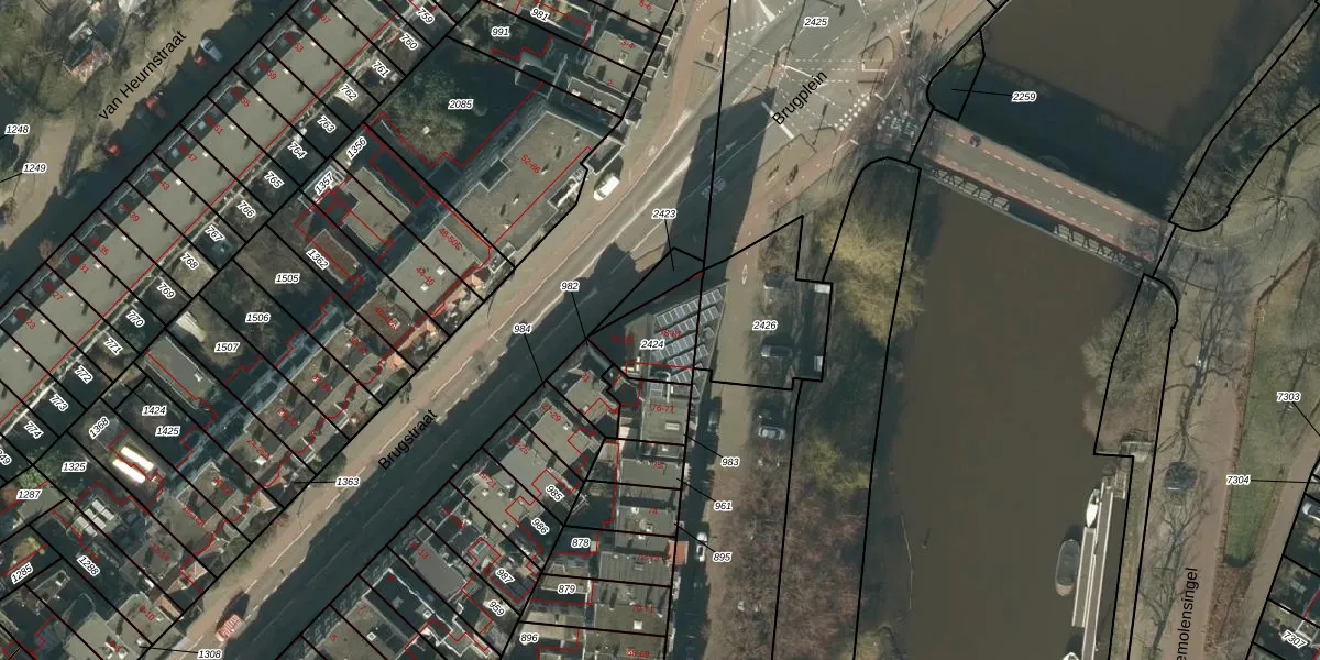 Het perceel waarop Brugstraat 35 staat heeft een oppervlakte van 172 m². Dit is een middelgroot perceel. De perceeloppervlakte wordt geregistreerd door het Kadaster. Gedetailleerde informatie over de maten van dit perceel kunt u vinden in het rapport Kadastrale kaart met maatvoering van Brugstraat 35.