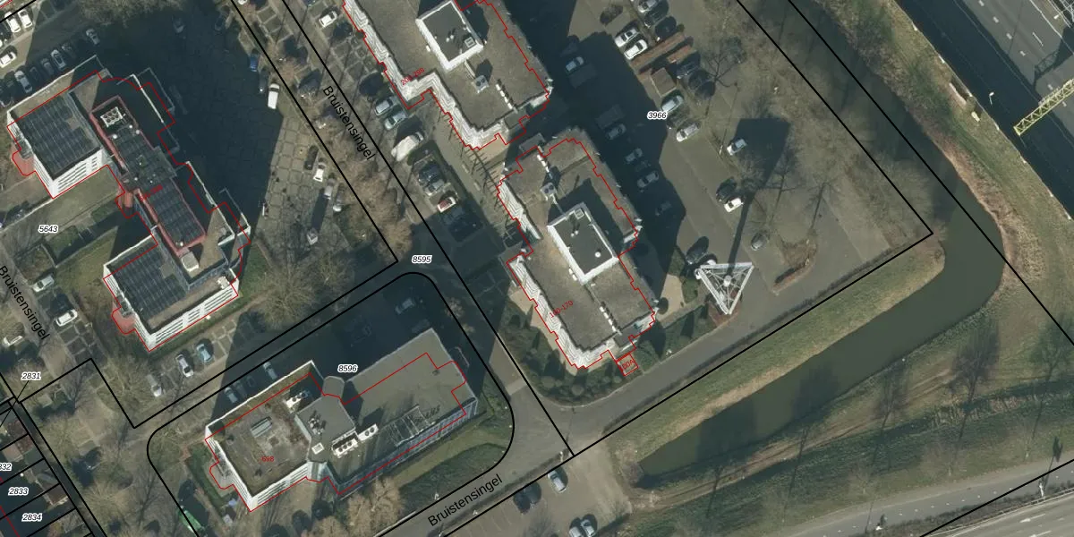 Het perceel waarop Bruistensingel 110 staat heeft een oppervlakte van 8395 m². Dit is een zeer groot perceel. De perceeloppervlakte wordt geregistreerd door het Kadaster. Gedetailleerde informatie over de maten van dit perceel kunt u vinden in het rapport Kadastrale kaart met maatvoering van Bruistensingel 110.