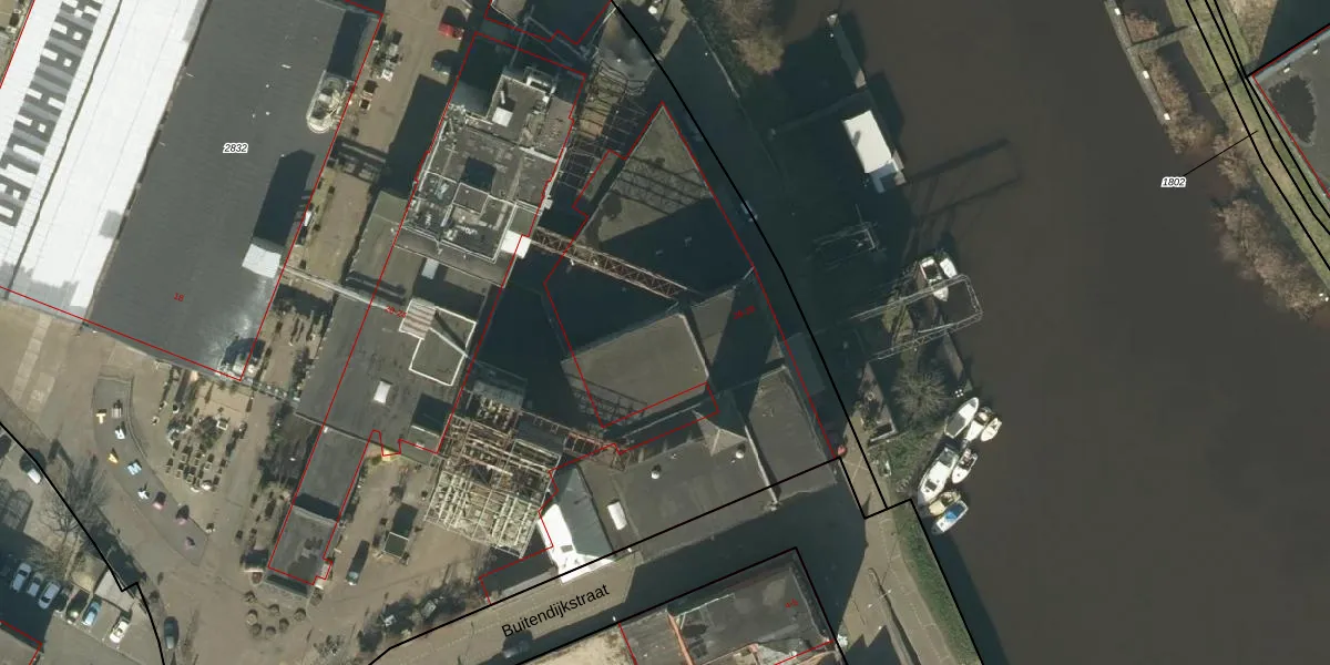 Het perceel waarop Buitendijkstraat 2 staat heeft een oppervlakte van 1,7 ha. Dit is een zeer groot perceel. De perceeloppervlakte wordt geregistreerd door het Kadaster. Gedetailleerde informatie over de maten van dit perceel kunt u vinden in het rapport Kadastrale kaart met maatvoering van Buitendijkstraat 2.