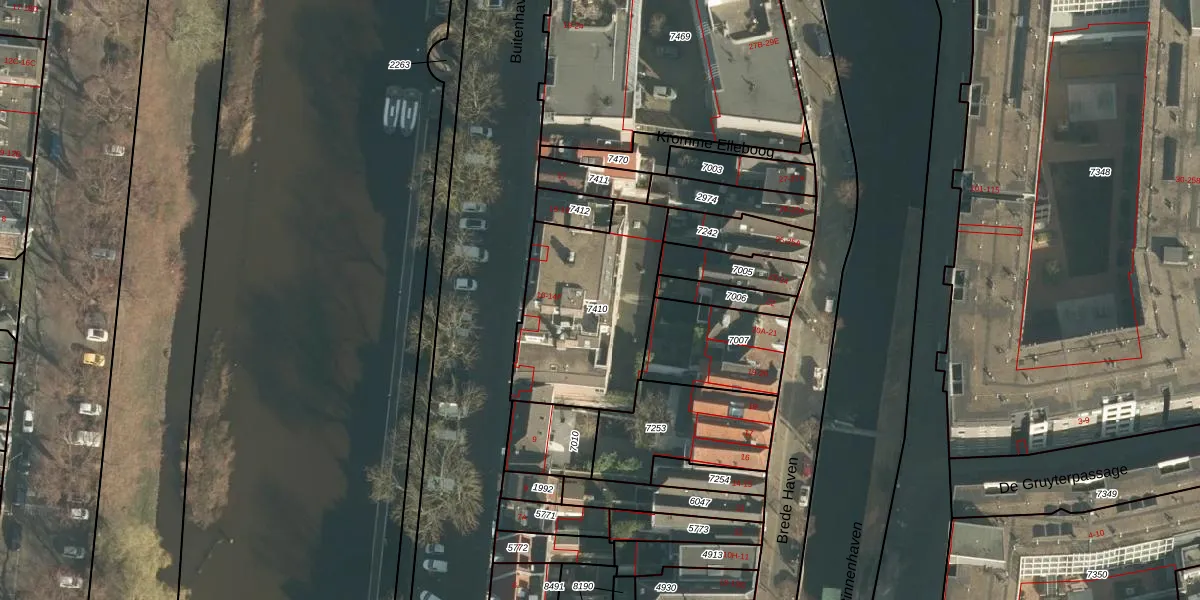 Het perceel waarop Buitenhaven 13-A staat heeft een oppervlakte van 707 m². Dit is een groot perceel. De perceeloppervlakte wordt geregistreerd door het Kadaster. Gedetailleerde informatie over de maten van dit perceel kunt u vinden in het rapport Kadastrale kaart met maatvoering van Buitenhaven 13-A.