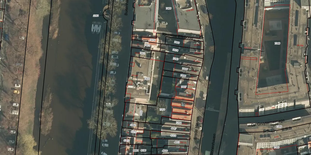 Het perceel waarop Buitenhaven 14-E staat heeft een oppervlakte van 707 m². Dit is een groot perceel. De perceeloppervlakte wordt geregistreerd door het Kadaster. Gedetailleerde informatie over de maten van dit perceel kunt u vinden in het rapport Kadastrale kaart met maatvoering van Buitenhaven 14-E.