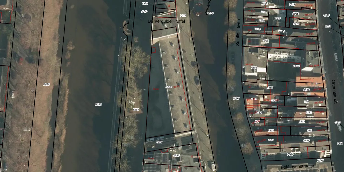 Het perceel waarop Buitenhaven 63 staat heeft een oppervlakte van 1263 m². Dit is een zeer groot perceel. De perceeloppervlakte wordt geregistreerd door het Kadaster. Gedetailleerde informatie over de maten van dit perceel kunt u vinden in het rapport Kadastrale kaart met maatvoering van Buitenhaven 63.