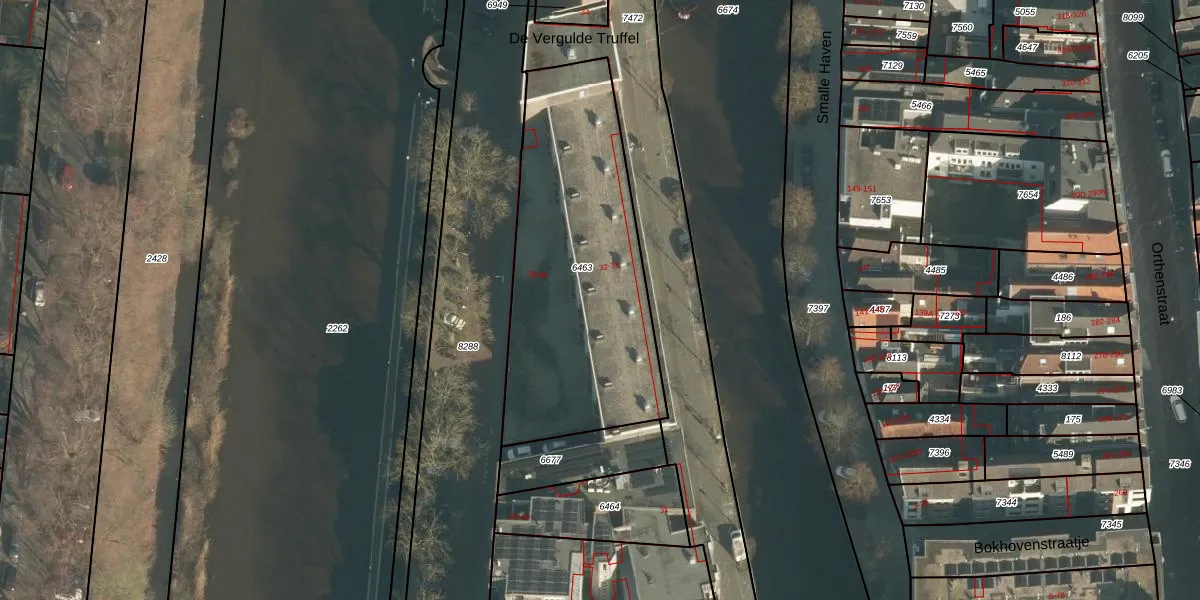 Het perceel waarop Buitenhaven 64 staat heeft een oppervlakte van 1263 m². Dit is een zeer groot perceel. De perceeloppervlakte wordt geregistreerd door het Kadaster. Gedetailleerde informatie over de maten van dit perceel kunt u vinden in het rapport Kadastrale kaart met maatvoering van Buitenhaven 64.