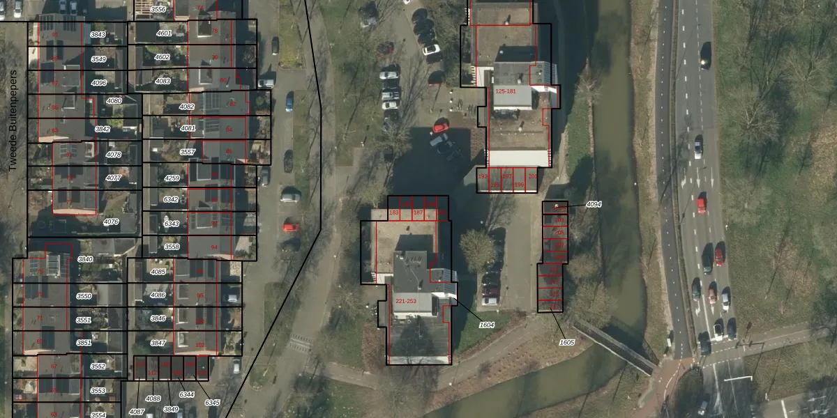 Buitenpepersdreef 187 is gelegen op kadastraal perceel HTG00O1604. Deze kadastrale aanduiding is uniek en wordt gebruikt door het Kadaster om eigendomsrechten en andere zakelijke rechten vast te leggen. Het perceel maakt onderdeel uit van de kadastrale gemeente 's-Hertogenbosch.