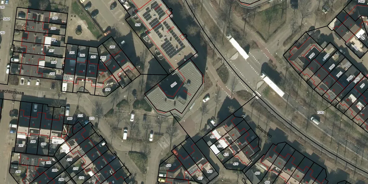 Het perceel waarop Burchtenlaan 264 staat heeft een oppervlakte van 524 m². Dit is een groot perceel. De perceeloppervlakte wordt geregistreerd door het Kadaster. Gedetailleerde informatie over de maten van dit perceel kunt u vinden in het rapport Kadastrale kaart met maatvoering van Burchtenlaan 264.
