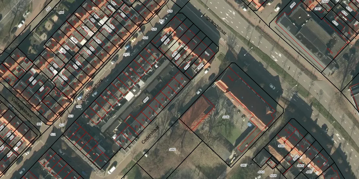 Het perceel waarop Cederstraat 34 staat heeft een oppervlakte van 2160 m². Dit is een zeer groot perceel. De perceeloppervlakte wordt geregistreerd door het Kadaster. Gedetailleerde informatie over de maten van dit perceel kunt u vinden in het rapport Kadastrale kaart met maatvoering van Cederstraat 34.