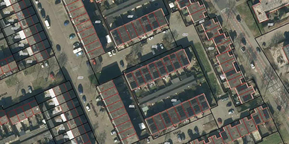 Het perceel waarop Cello 5 staat heeft een oppervlakte van 2578 m². Dit is een zeer groot perceel. De perceeloppervlakte wordt geregistreerd door het Kadaster. Gedetailleerde informatie over de maten van dit perceel kunt u vinden in het rapport Kadastrale kaart met maatvoering van Cello 5.