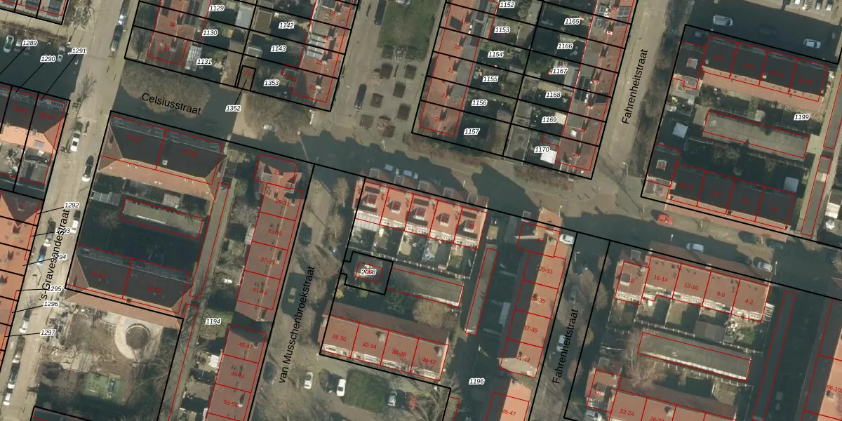 Het perceel waarop Celsiusstraat 24 staat heeft een oppervlakte van 3821 m². Dit is een zeer groot perceel. De perceeloppervlakte wordt geregistreerd door het Kadaster. Gedetailleerde informatie over de maten van dit perceel kunt u vinden in het rapport Kadastrale kaart met maatvoering van Celsiusstraat 24.