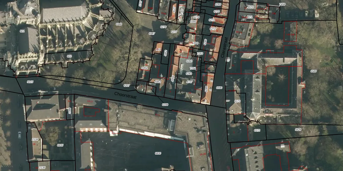 Choorstraat 12 is gelegen op kadastraal perceel HTG00H5956. Deze kadastrale aanduiding is uniek en wordt gebruikt door het Kadaster om eigendomsrechten en andere zakelijke rechten vast te leggen. Het perceel maakt onderdeel uit van de kadastrale gemeente 's-Hertogenbosch.