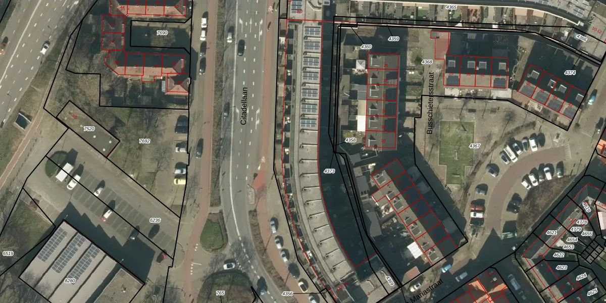 Het perceel waarop Citadellaan 151 staat heeft een oppervlakte van 3978 m². Dit is een zeer groot perceel. De perceeloppervlakte wordt geregistreerd door het Kadaster. Gedetailleerde informatie over de maten van dit perceel kunt u vinden in het rapport Kadastrale kaart met maatvoering van Citadellaan 151.