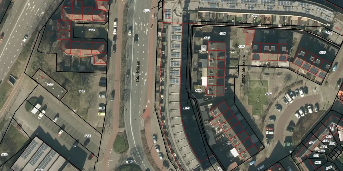 Het perceel waarop Citadellaan 153 staat heeft een oppervlakte van 3978 m². Dit is een zeer groot perceel. De perceeloppervlakte wordt geregistreerd door het Kadaster. Gedetailleerde informatie over de maten van dit perceel kunt u vinden in het rapport Kadastrale kaart met maatvoering van Citadellaan 153.