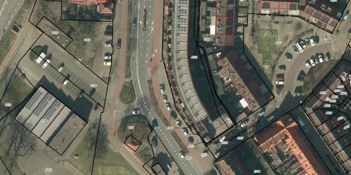 Het perceel waarop Citadellaan 179 staat heeft een oppervlakte van 3978 m². Dit is een zeer groot perceel. De perceeloppervlakte wordt geregistreerd door het Kadaster. Gedetailleerde informatie over de maten van dit perceel kunt u vinden in het rapport Kadastrale kaart met maatvoering van Citadellaan 179.