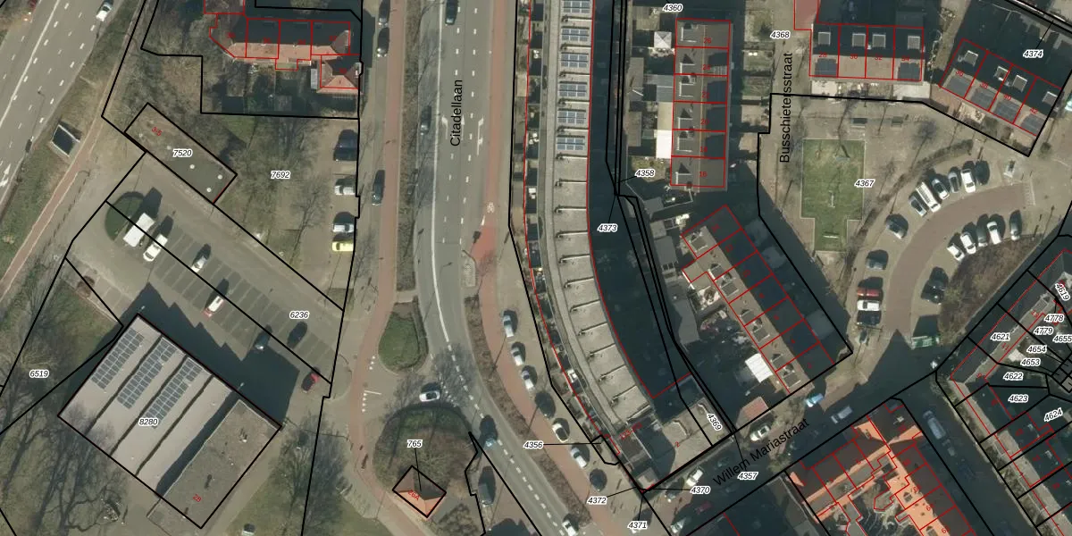 Het perceel waarop Citadellaan 183 staat heeft een oppervlakte van 3978 m². Dit is een zeer groot perceel. De perceeloppervlakte wordt geregistreerd door het Kadaster. Gedetailleerde informatie over de maten van dit perceel kunt u vinden in het rapport Kadastrale kaart met maatvoering van Citadellaan 183.