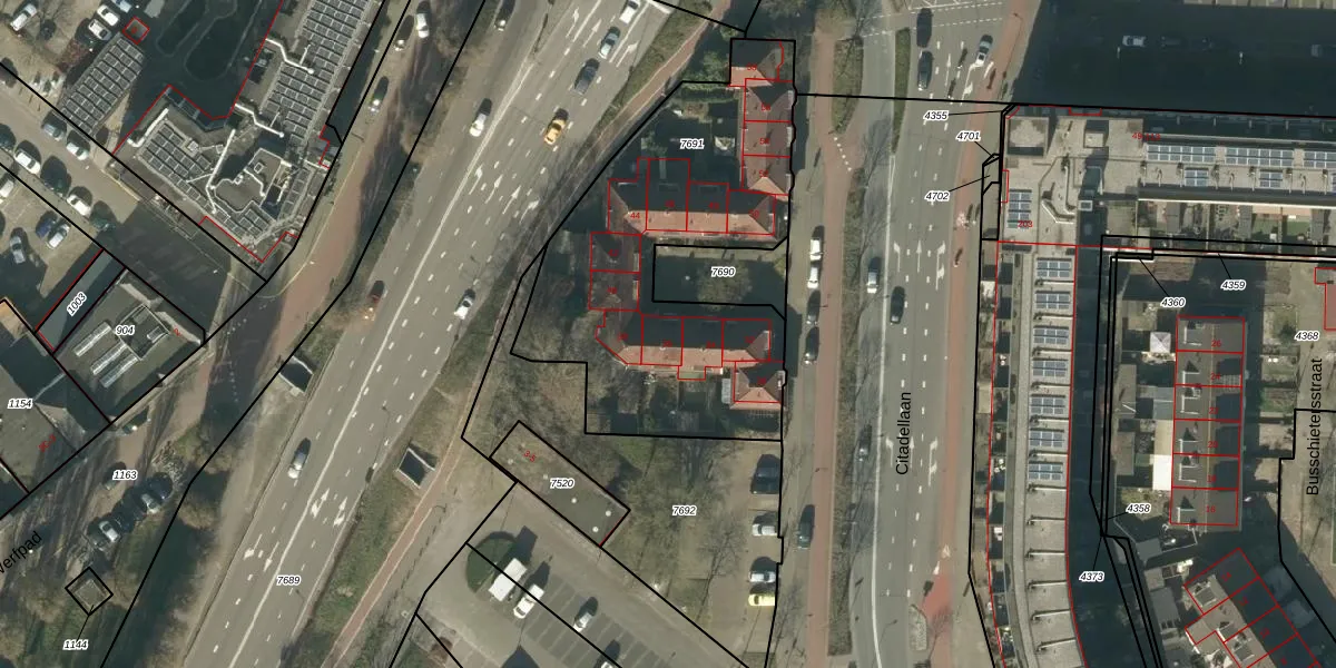 Het perceel waarop Citadellaan 36 staat heeft een oppervlakte van 1537 m². Dit is een zeer groot perceel. De perceeloppervlakte wordt geregistreerd door het Kadaster. Gedetailleerde informatie over de maten van dit perceel kunt u vinden in het rapport Kadastrale kaart met maatvoering van Citadellaan 36.