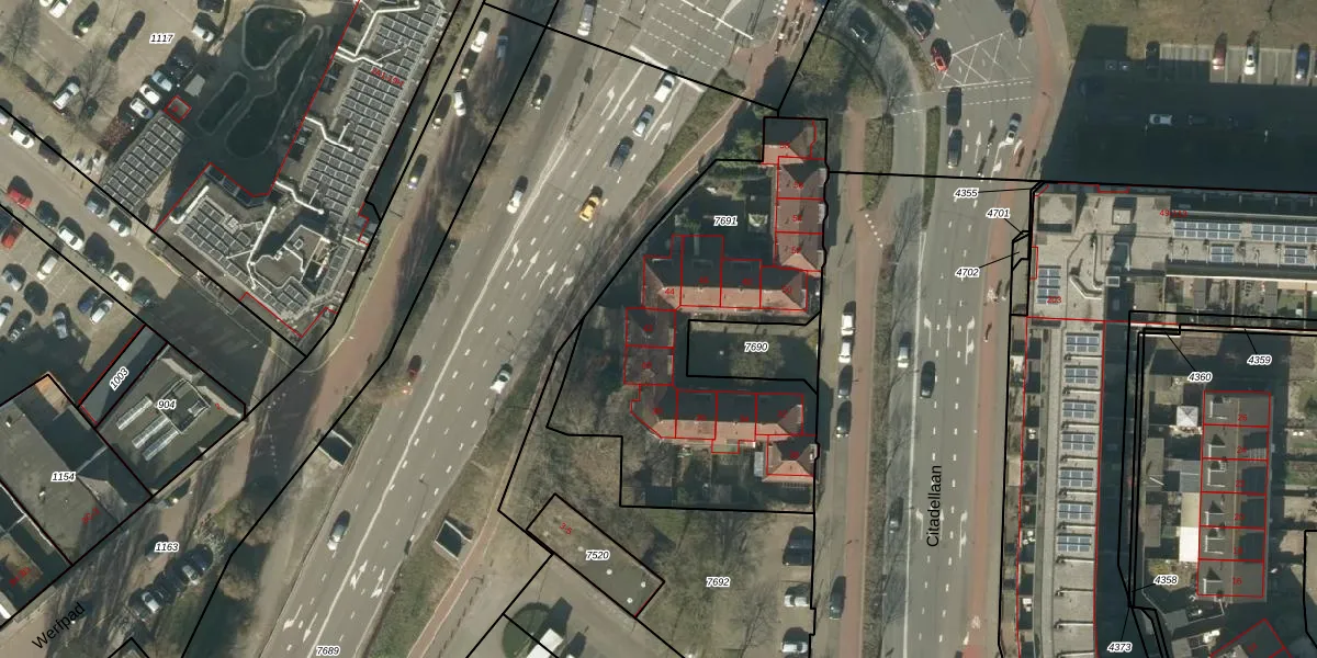 Het perceel waarop Citadellaan 42 staat heeft een oppervlakte van 1537 m². Dit is een zeer groot perceel. De perceeloppervlakte wordt geregistreerd door het Kadaster. Gedetailleerde informatie over de maten van dit perceel kunt u vinden in het rapport Kadastrale kaart met maatvoering van Citadellaan 42.