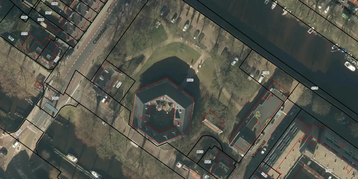 Het perceel waarop Citadellaan 7 staat heeft een oppervlakte van 5516 m². Dit is een zeer groot perceel. De perceeloppervlakte wordt geregistreerd door het Kadaster. Gedetailleerde informatie over de maten van dit perceel kunt u vinden in het rapport Kadastrale kaart met maatvoering van Citadellaan 7.