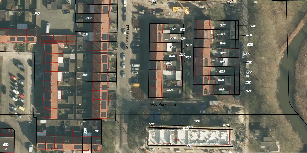 Het perceel waarop Da Costastraat 12 staat heeft een oppervlakte van 399 m². Dit is een groot perceel. De perceeloppervlakte wordt geregistreerd door het Kadaster. Gedetailleerde informatie over de maten van dit perceel kunt u vinden in het rapport Kadastrale kaart met maatvoering van Da Costastraat 12.