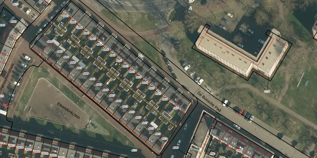 Het perceel waarop De Bossche Pad 30 staat heeft een oppervlakte van 102 m². Dit is een middelgroot perceel. De perceeloppervlakte wordt geregistreerd door het Kadaster. Gedetailleerde informatie over de maten van dit perceel kunt u vinden in het rapport Kadastrale kaart met maatvoering van De Bossche Pad 30.