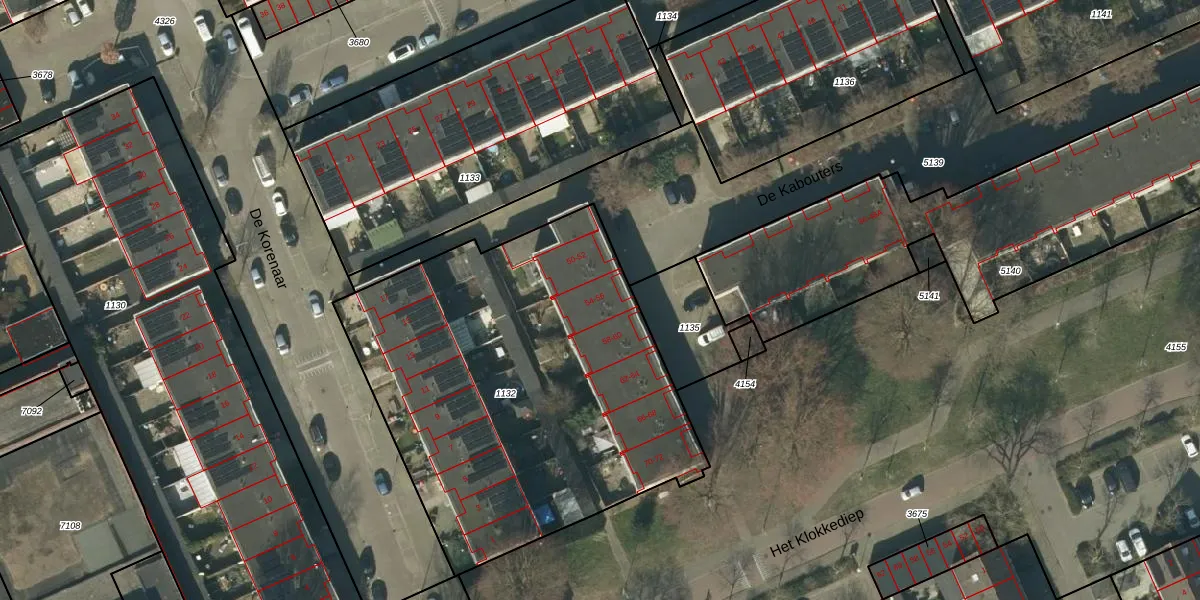 De Kabouters 54 is gelegen op kadastraal perceel HTG00O1132. Deze kadastrale aanduiding is uniek en wordt gebruikt door het Kadaster om eigendomsrechten en andere zakelijke rechten vast te leggen. Het perceel maakt onderdeel uit van de kadastrale gemeente 's-Hertogenbosch.
